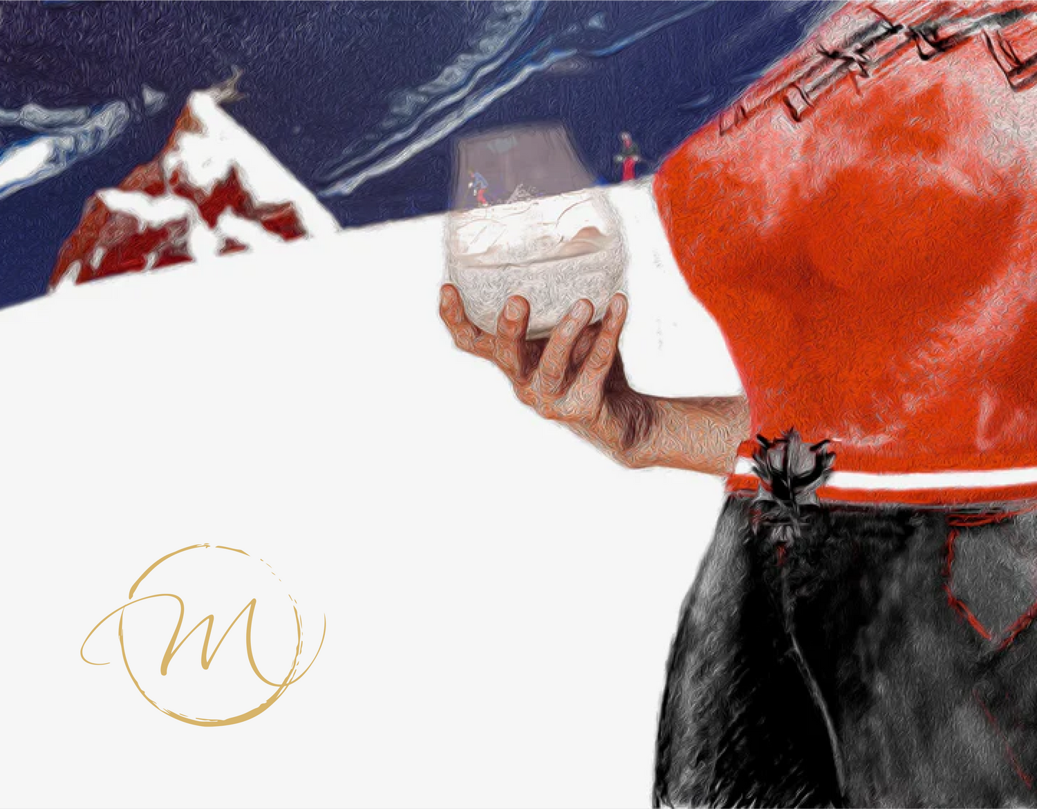 There they sit, the ski enthusiasts, in the gondola, enjoying the splendor of a brilliant winter morning. Their voices mix with the gentle rustling of the cable reels as they talk about the magical moments of the previous evening, which they celebrated with the finest gin and tonic. Suddenly, it comes like a bolt from the blue: "Actually, we should develop our own gin!" "Oh yes!" Sandra exclaims enthusiastically, "And you" - her gaze is directed at the astonished artist in the group - "design a great label for it!" "No problem! We'll use one of my 'tits pictures' !" Ares grins, the insider allusion hovers lightly between them. "And call the whole thing 'MUTTERMILCH'!" And so a crazy idea becomes a spark that ignites. After countless attempts and blind tastings in your cozy mountain home, a recipe is finally created in which vanilla plays a significant role....